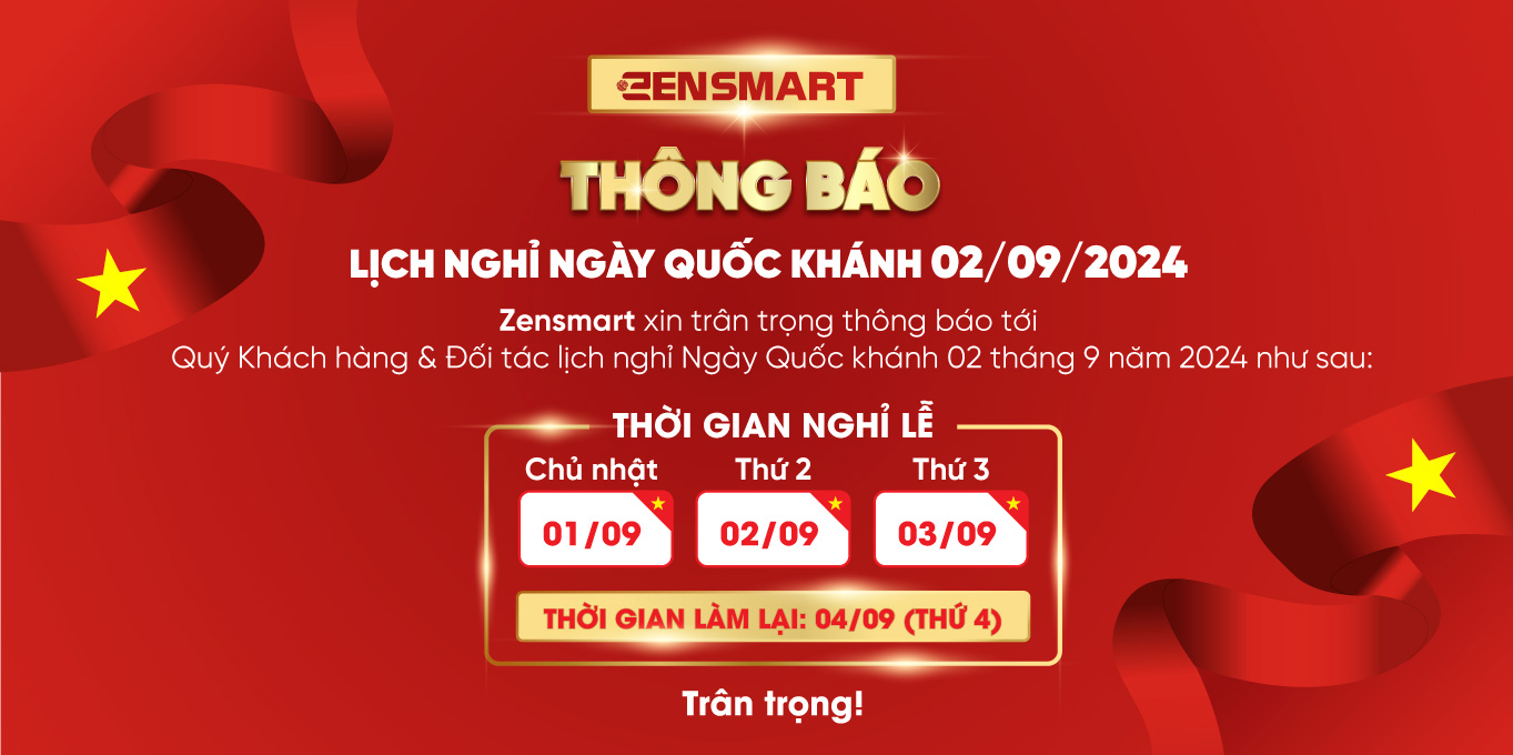 ZENSMART THÔNG BÁO TỚI QUÝ KHÁCH HÀNG LỊCH NGHỈ LỄ QUỐC KHÁNH 02/09/2024